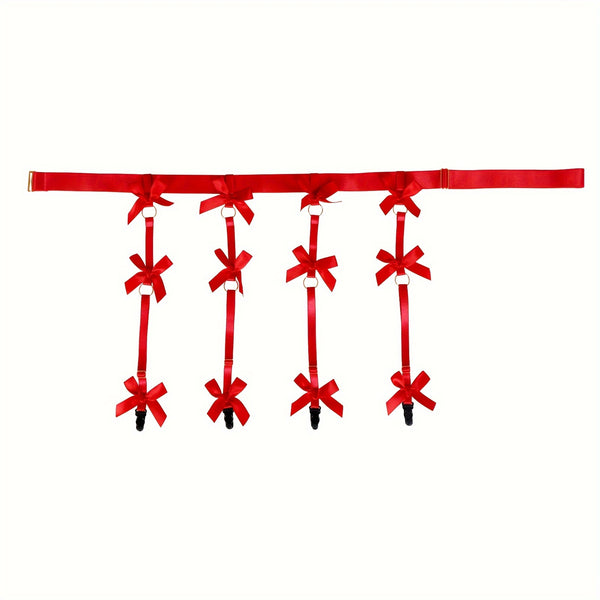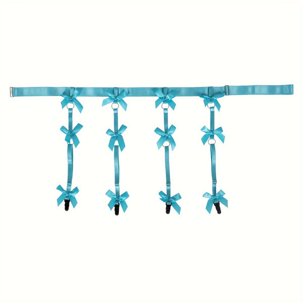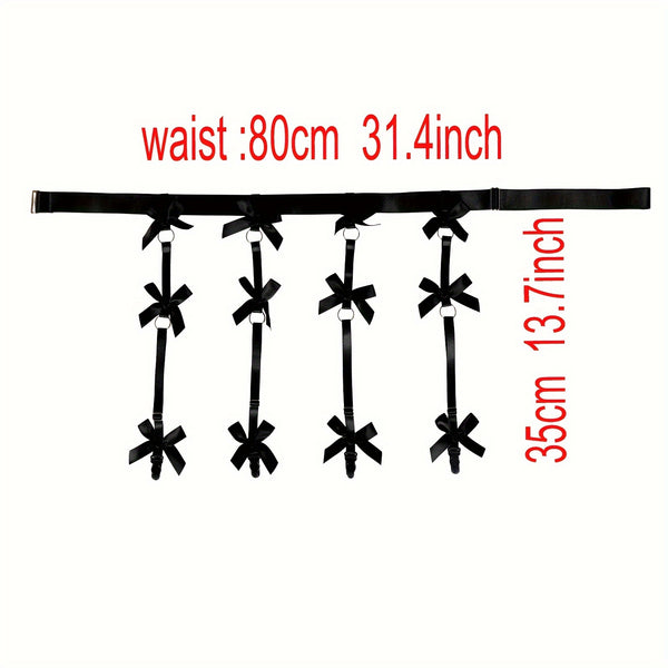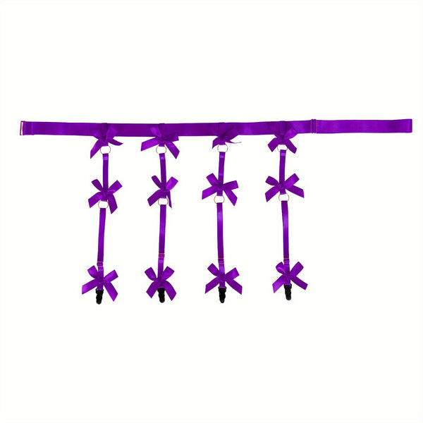 Purple Bowknot Garter Belt – Adjustable Punk Gothic Women’s Body Harness | Stretchy Satin Straps, Decorative Bows | BadBLingerie Festival & Rave Accessory