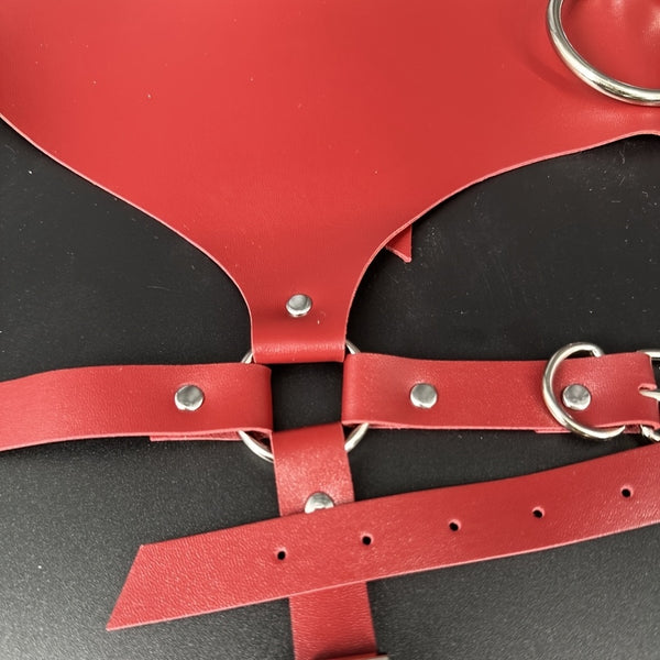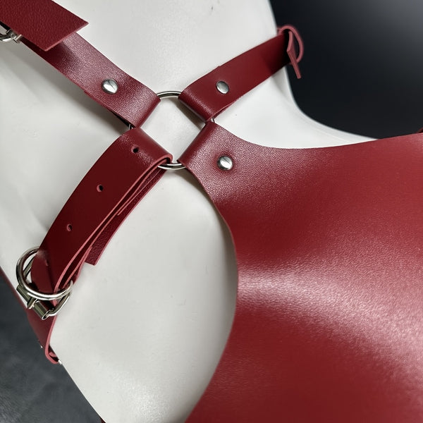 Red Faux Leather Body Harness – Adjustable Straps & Metal Rings | BadBLingerie Gothic Lingerie Set, Festival Outfit, Statement Fashion Accessory