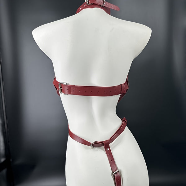 BadBLingerie Red PU Leather Body Harness – Confidence Meets Edge.
