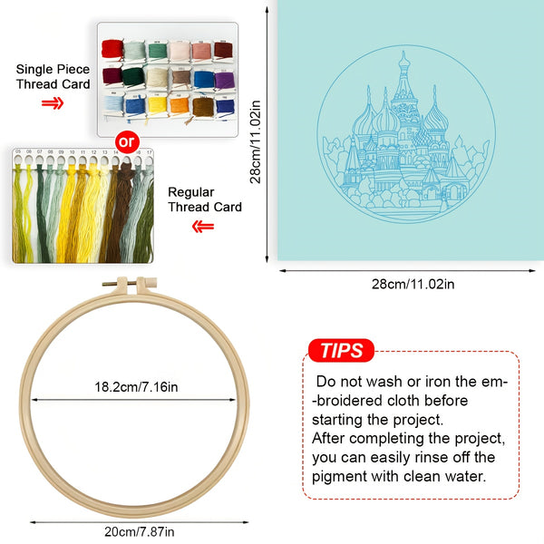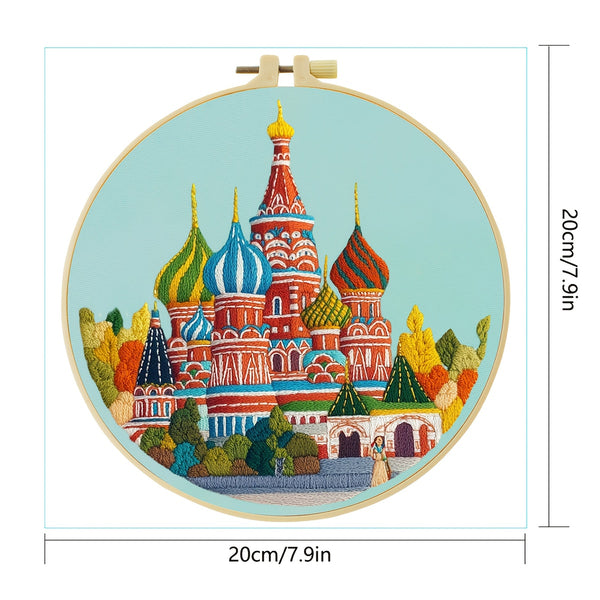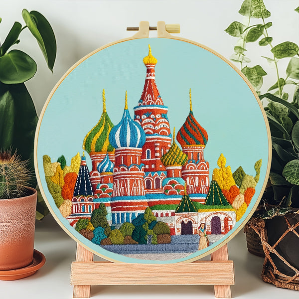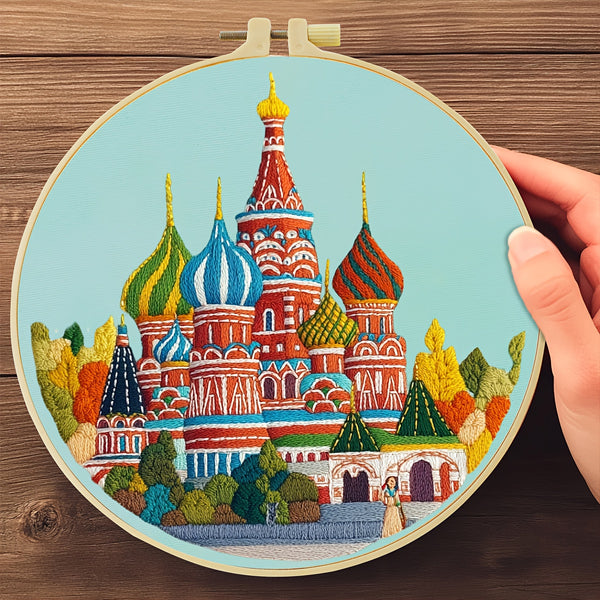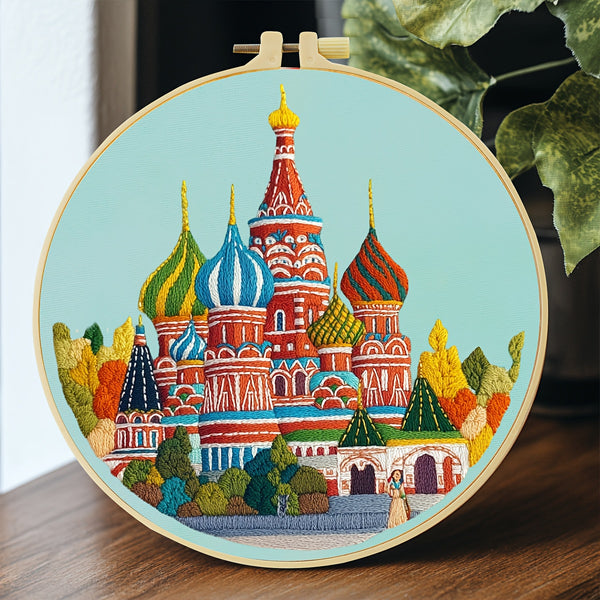 Russian Architecture Embroidery Kit – St. Basil’s Cathedral & Kremlin DIY Stitch Set | Beginner Handmade Gift & Home Décor Craft