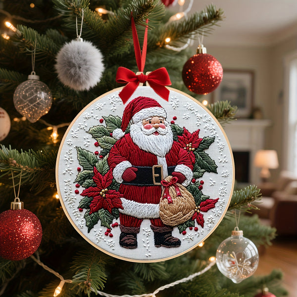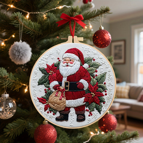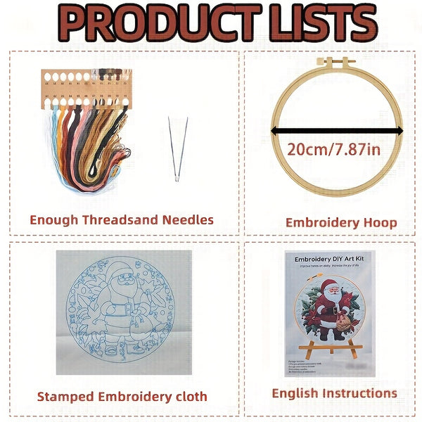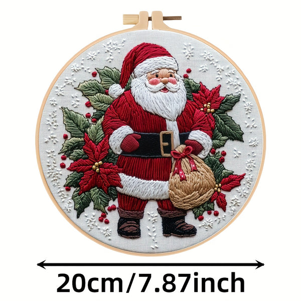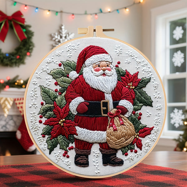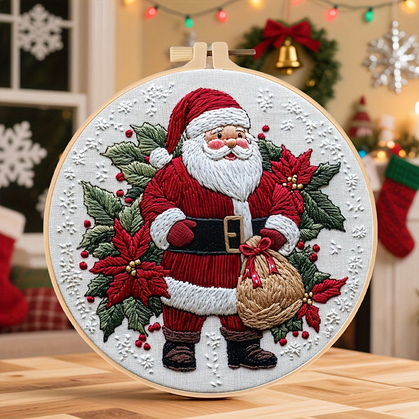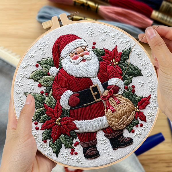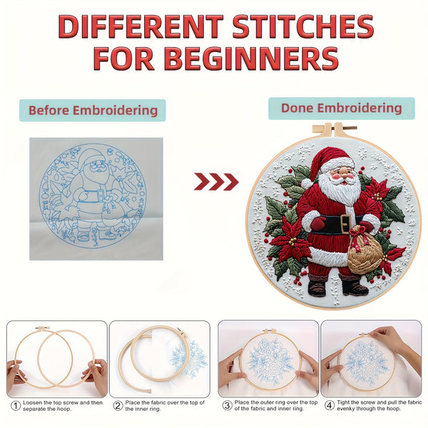 Santa Claus Embroidery Kit for Beginners – DIY Christmas Stitch Set with Hoop, Threads & Printed Pattern | Holiday Craft Gift