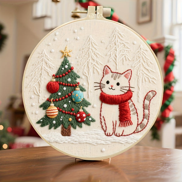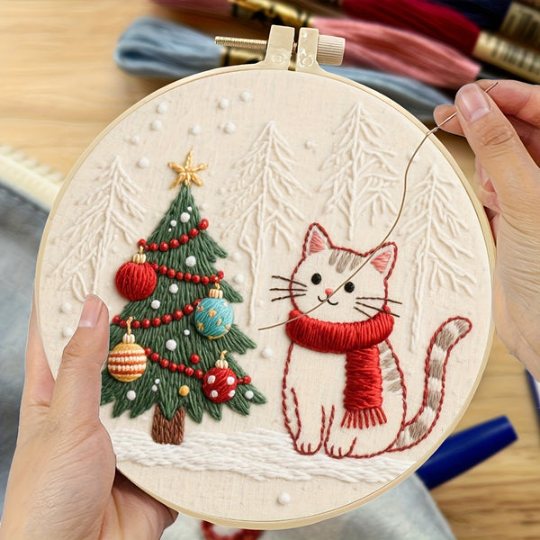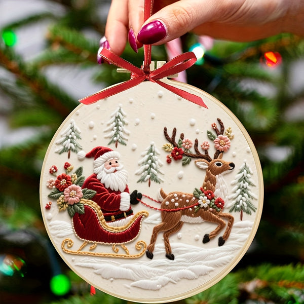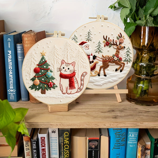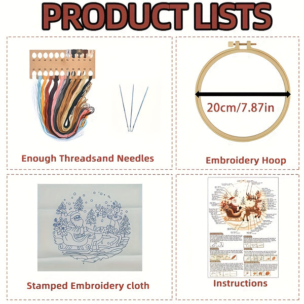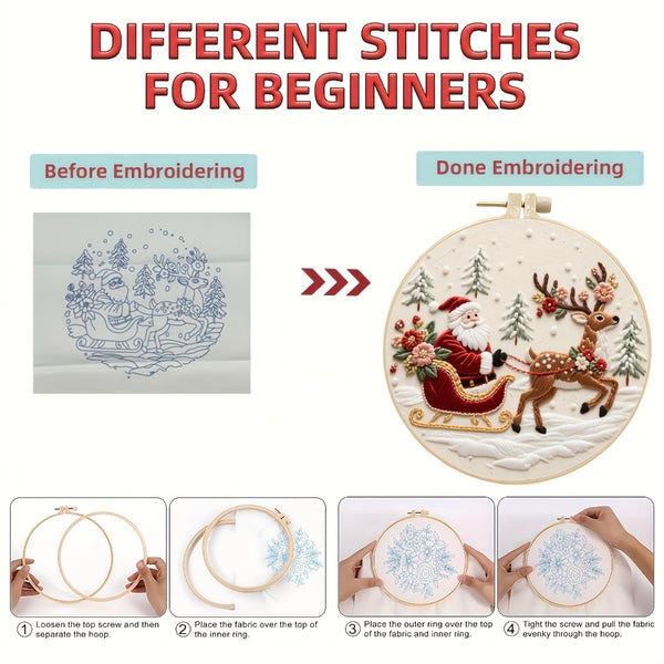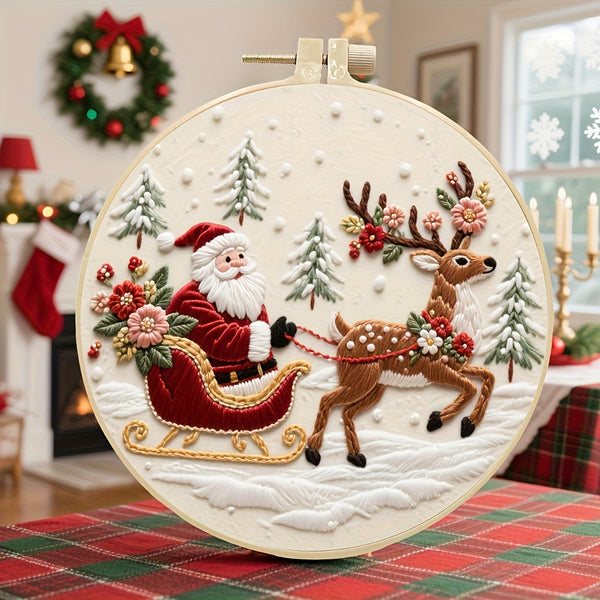 Santa Sleigh & Reindeer Embroidery Kit – Beginner DIY Stitch Set with Fabric & Threads | Luxury Christmas Gift & Holiday Décor