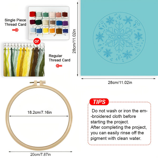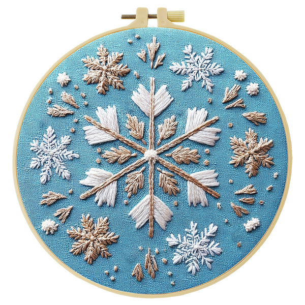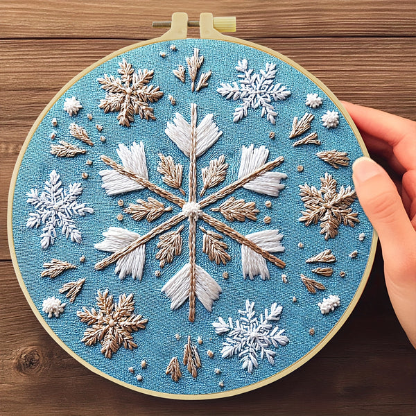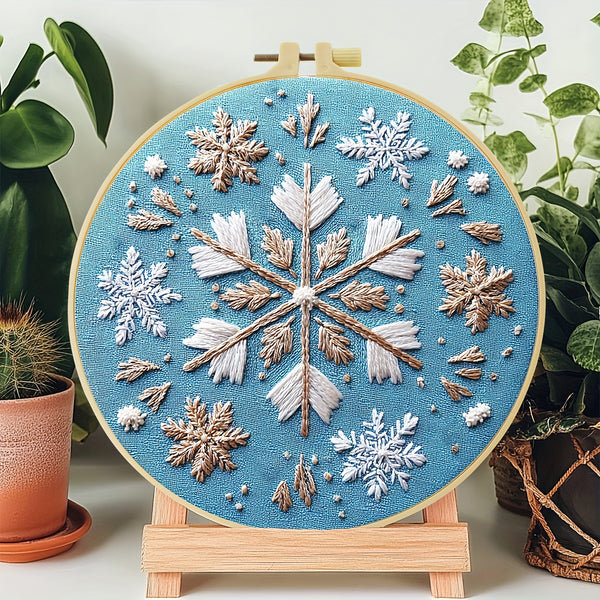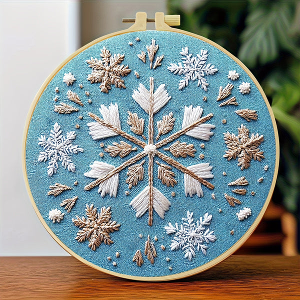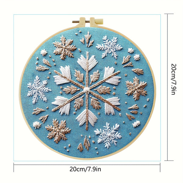 Snowflake Embroidery Kit for Beginners – DIY Winter Design with Pre-Printed Fabric, Hoop, Threads & Needles – Cozy Holiday Craft & Gift