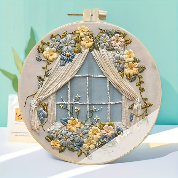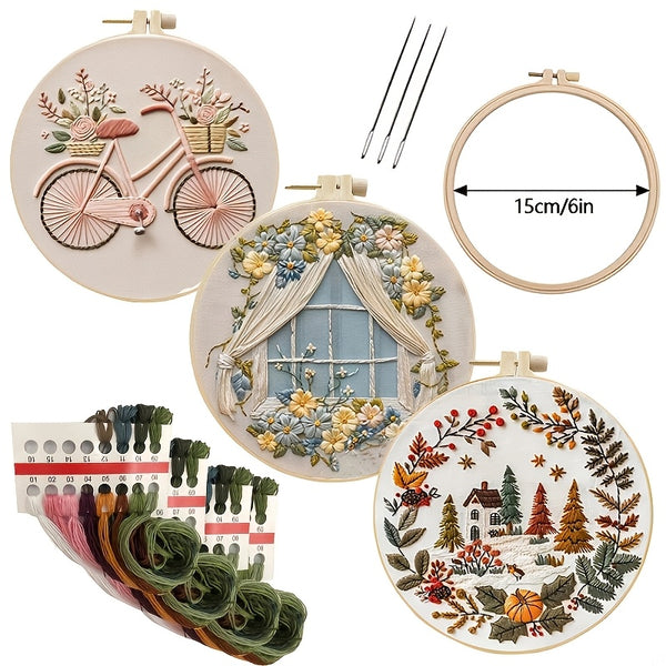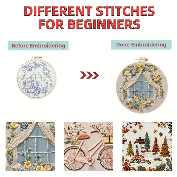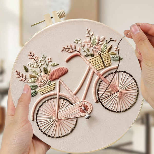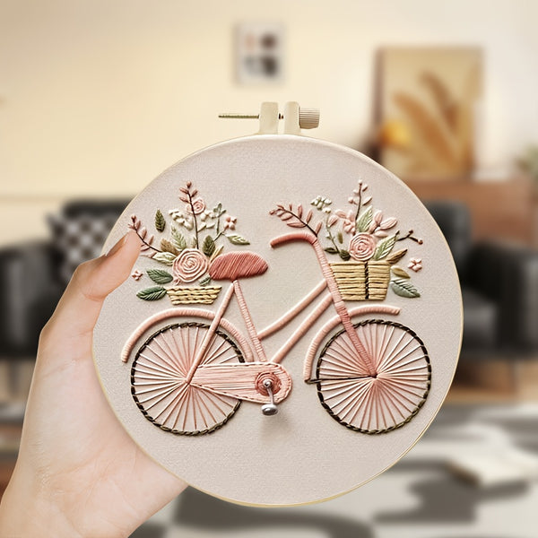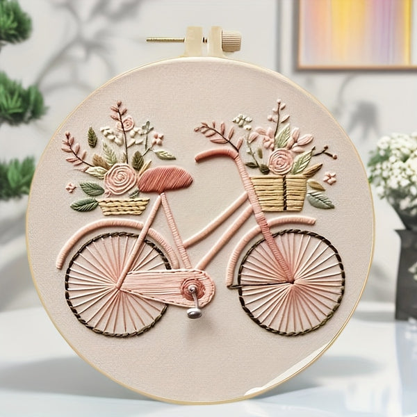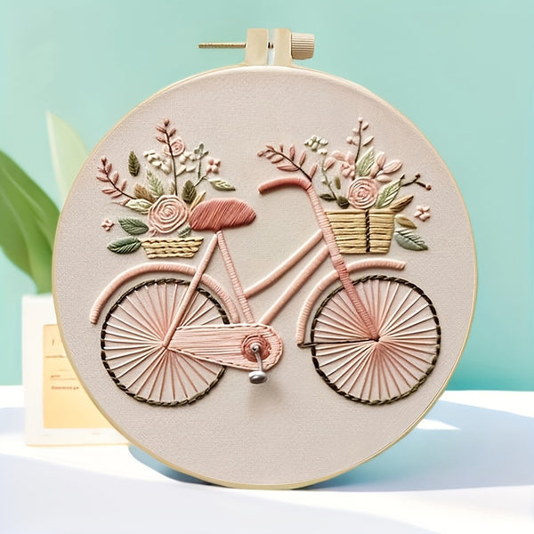 Spring Floral Bike Embroidery Kit – Beginner DIY Stitch Set with Hoop, Threads & Fabric | Valentine’s & Easter Gift Home Décor