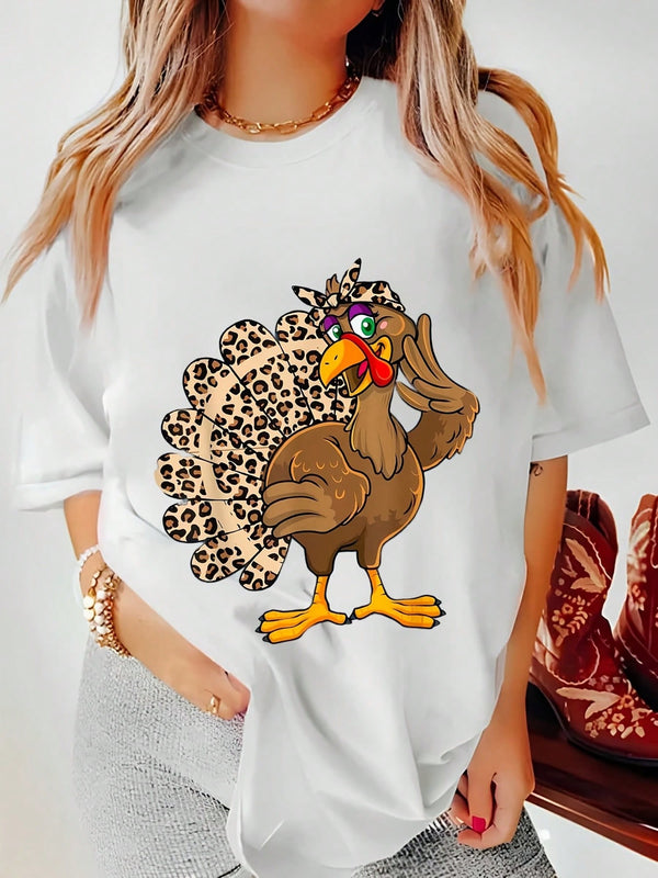Add some sass to your Thanksgiving style with this chic leopard print turkey t-shirt! Featuring a playful turkey with bold animal-print feathers and a fun fall vibe, this tee is perfect for casual holiday gatherings, Friendsgiving dinners, or everyday autumn wear. Crafted from 100% soft cotton with a slight stretch, it offers a comfy, flattering fit for all body types.