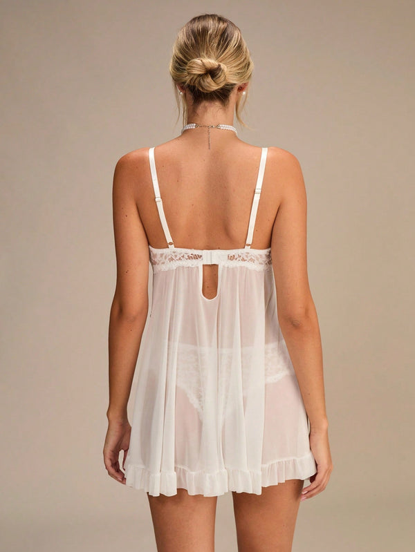 Set Composition: Two-piece set β sheer lace babydoll and matching thong.