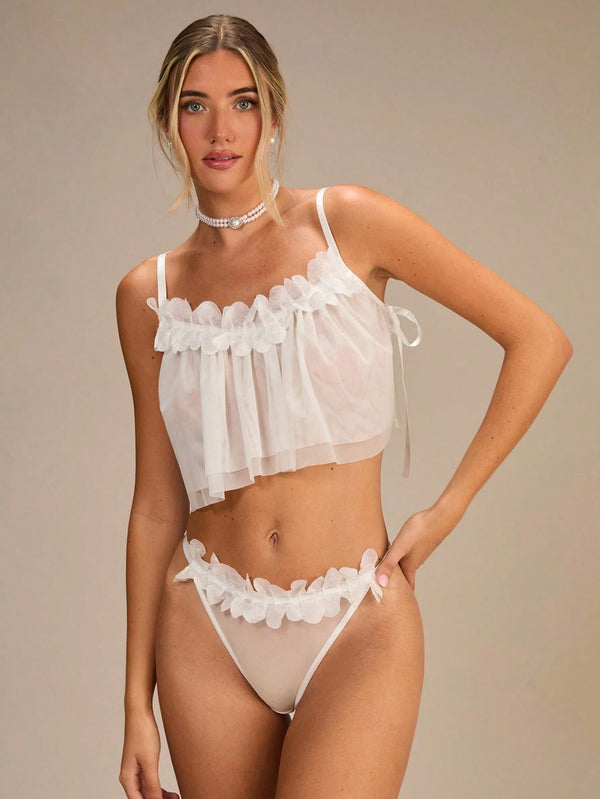Panty Type: Low-rise thong with delicate 3D floral accents.