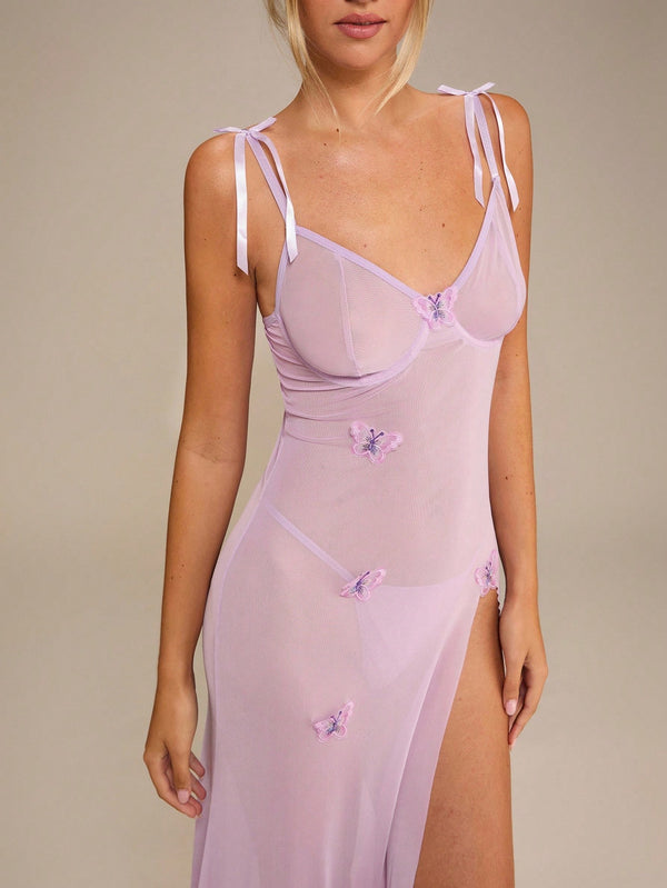 • Pattern & Detailing: Butterfly patch embroidery with sheer mesh and satin ribbon ties.