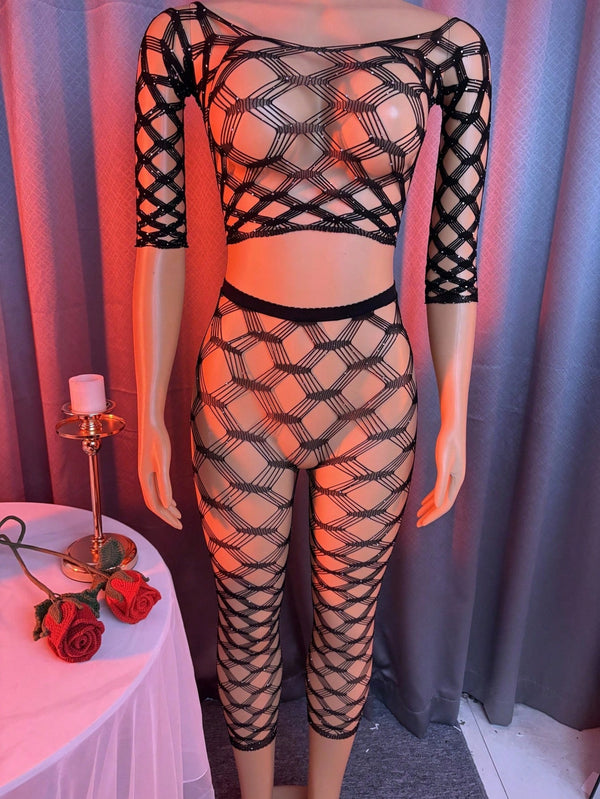 The boat neckline, cropped sleeves, and full-length leg design exude modern sophistication, while the daring sheer finish teases the senses with understated confidence. Lightweight yet striking, this piece transforms your body into a canvas of allure β a reflection of fearless femininity and refined sensuality.