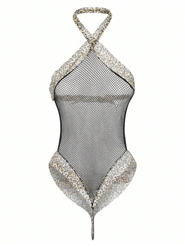 The Wild Temptation Bodystocking captures the essence of fearless seduction โ a fusion of primal energy and refined confidence. Its sheer black fishnet body is framed by fierce leopard-print accents that celebrate bold femininity and untamed charm. The halter neckline enhances the silhouette, sculpting the shoulders and elongating the frame for a commanding yet elegant look.