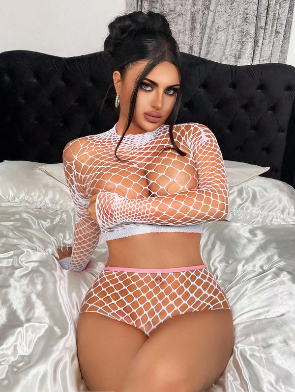 Step into the essence of Y2K sensuality with the White Mesh Illusion Set β a fearless statement of confidence and allure. The unlined, high-neck crop top features a striking fishnet design with wrist-length sleeves and a backless silhouette for that perfect balance of edge and elegance. Paired with matching boyshorts, this wireless ensemble flatters natural curves while letting your skin subtly shine through.