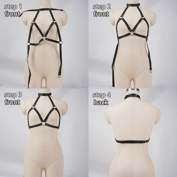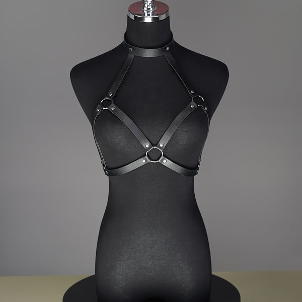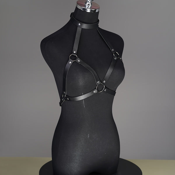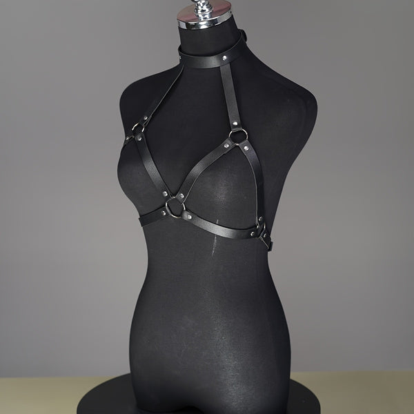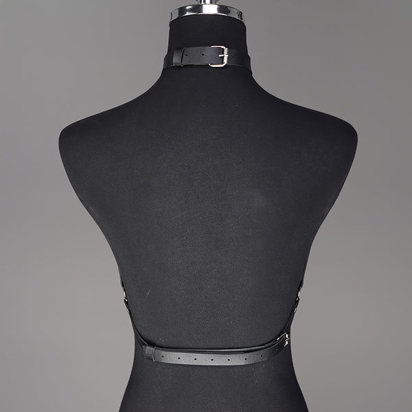 Adjustable Faux Leather Body Harness – Gothic Choker Cage Bra for Women