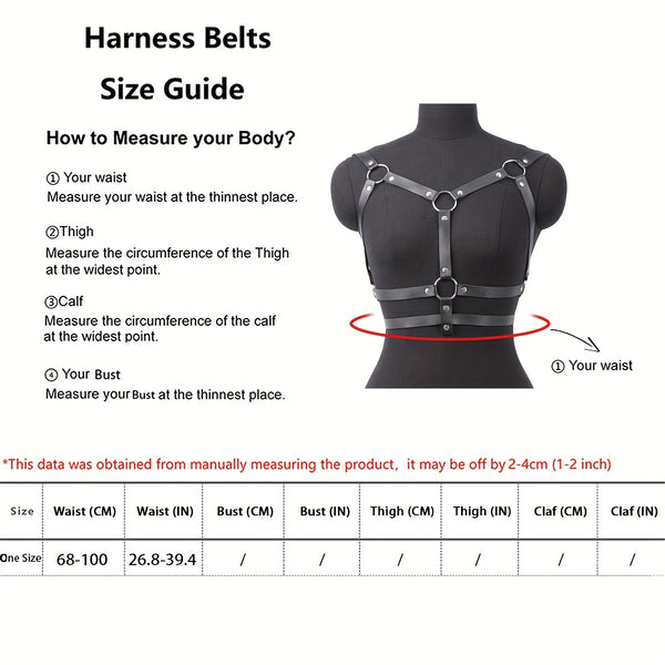 Unleash your bold style with this Gothic PU Leather Harness Belt, designed to accentuate your outfit with confidence and edge. Made with durable faux leather, metal rivets, and alloy rings, this piece adds a rebellious yet elegant touch to your wardrobe.