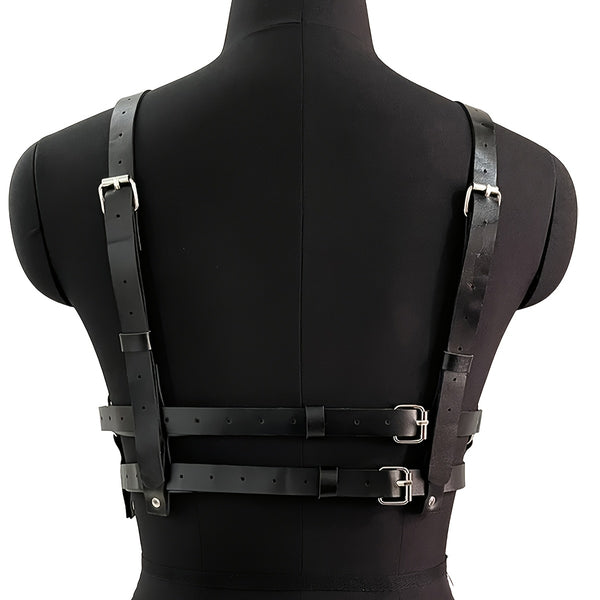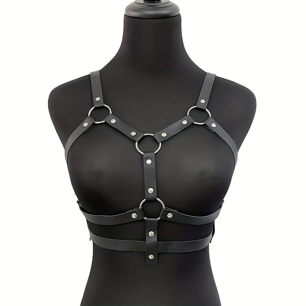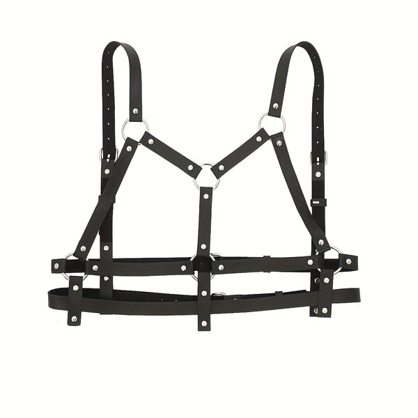 Women’s Gothic Harness Chest Belt – Adjustable PU Leather Straps with Rivet Detailing