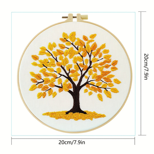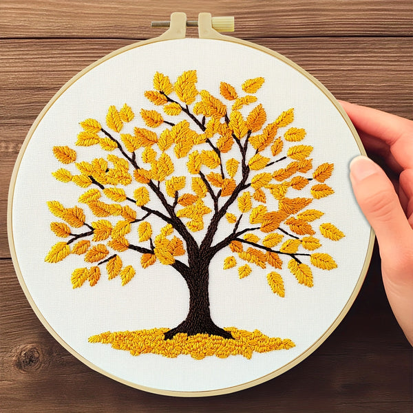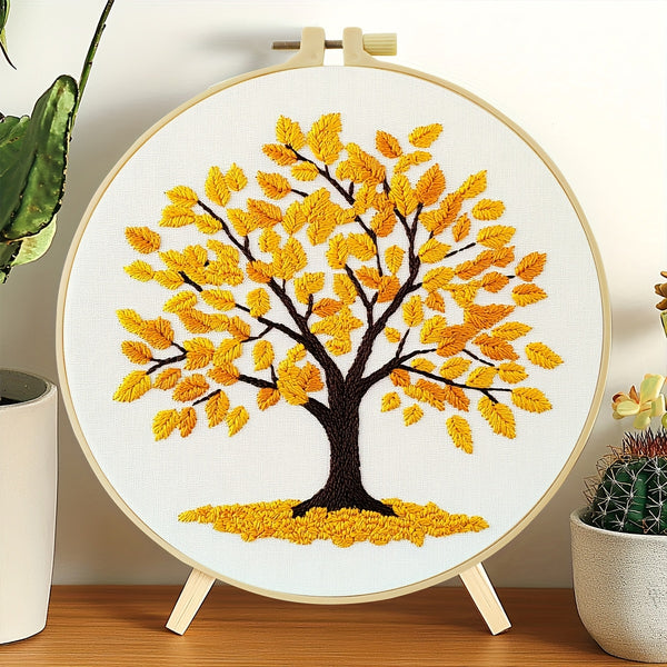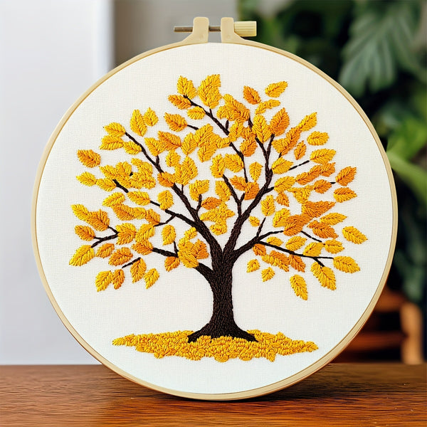 Yellow Tree Embroidery Kit – Beginner DIY Stitch Set with Fabric, Threads & Needle | Autumn Design Gift & Home Décor Craft